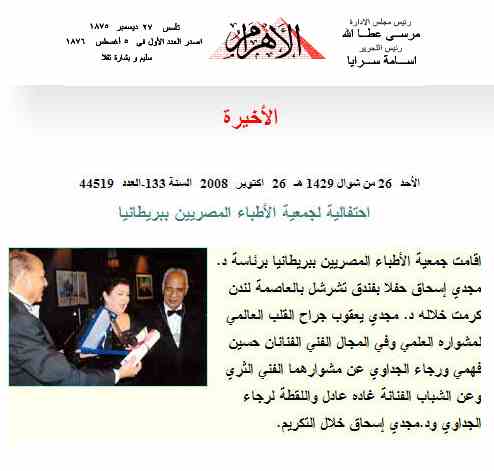 Certificate of Appreciation to Professor Sir Magdi Yacoub, Ahram 2008