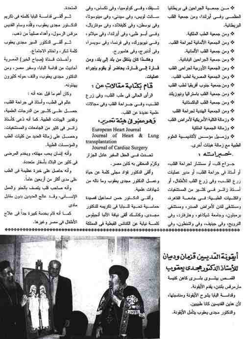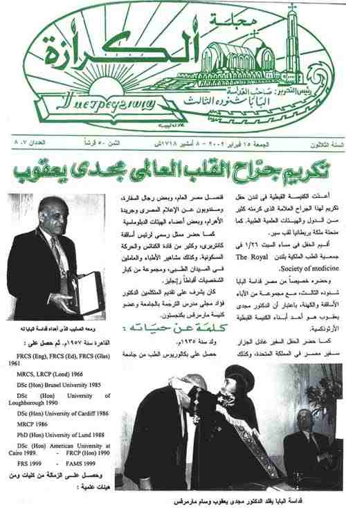 Pope Shenouda Honours Prof. Sir Magdy Yacoub, Al- Keraza 2002