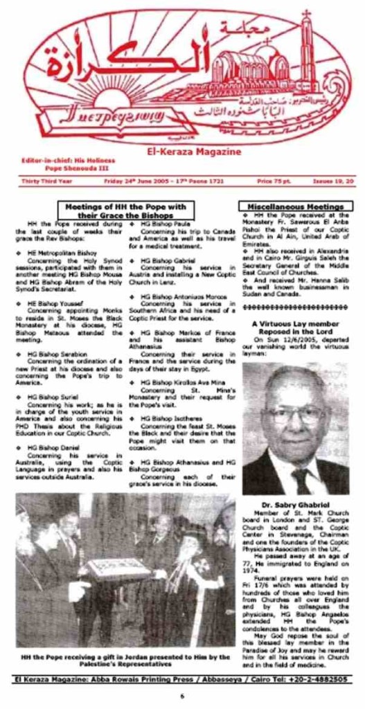 Dr. Sabry Gabriel (1928 – 2005) El-Keraza Magazine, EN